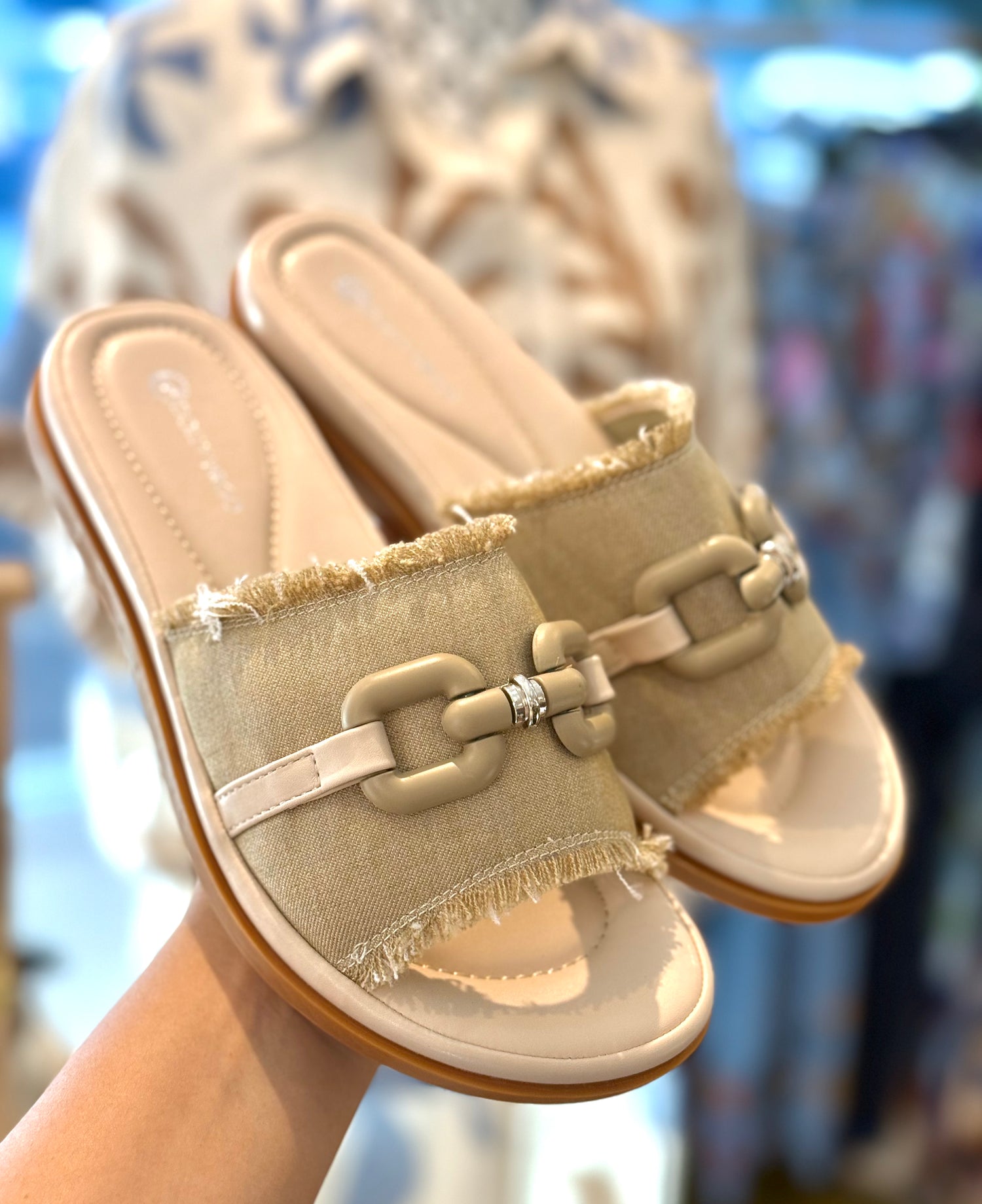 Dolly Virgo Beige Denim Slides // SIZE 5
