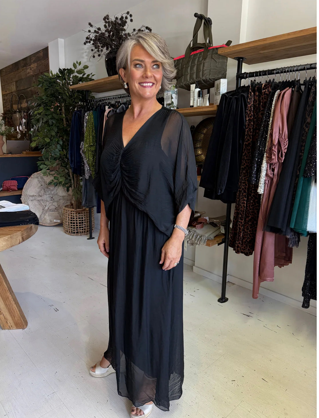 Indulge in effortless elegance with the Cora Silk Ruched Dress. Crafted in Italy with a luxurious silk-blend, this dress offers a fluid drape for ultimate comfort. The elasticated waistline provides a flattering and comfortable fit. This dress is perfect for a special occasion. A sophisticated and timeless piece.