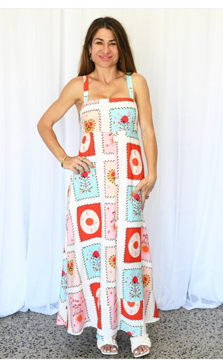 A lovely strapy dress made from a gorgeous lightweight designed fabric that will keep you looking fresh all day long.
